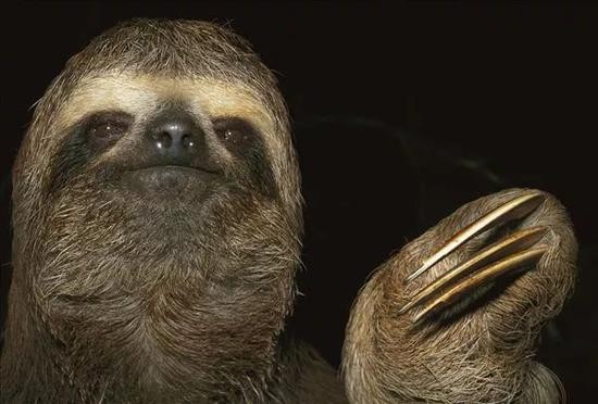 树懒双臂展开相当于一个成年男子,脸部颜色丰富,如同戴了一张鬼魅面具,它的利爪十分锋利,长度远超过老虎的爪子。冷不丁毫无声息地突然出现在你背后,不吓得尿裤子已经要算峰林心理素质好。