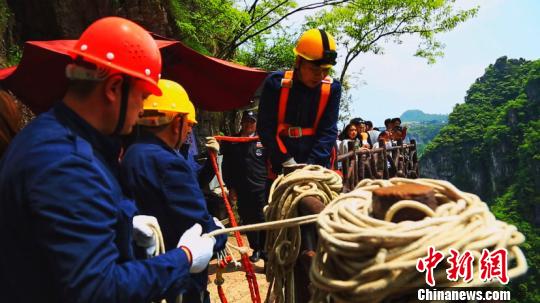 中新网贵州万山5月3日电在贵州万山朱砂古镇景区内,有一条1213米长的悬崖栈道最受游客青睐,栈道上一边是触手可及的陡峭绝壁,一边是群山环绕的悬空山谷,这样惊险刺激的景点对于吴长平四人来说却是“命悬半空”的初始之地。