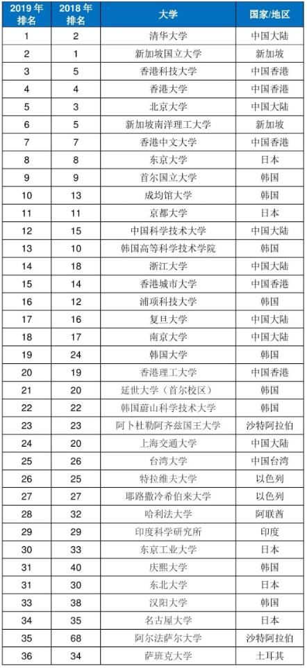来自亚洲27个国家和地区的400多所大学进入榜单。据介绍,清华大学本次排名第一主要归功于其教学环境、引文影响和国际展望得分的大幅提升。新加坡国立大学在本次排名中位列第二,香港科技大学、香港大学和北京大学分列第三至第五。