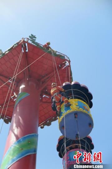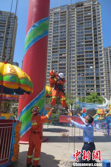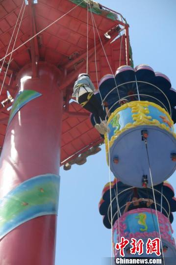 5月3日11时37分,浙江省温州市泰顺县消防救援大队指挥中心接到报警称:位于泰顺县罗阳镇华鸿广场游乐园内跳伞塔故障,有人员被困情况危急。接警后,泰顺消防中队立即出动一辆抢险救援车、7名指战员赶往现场。