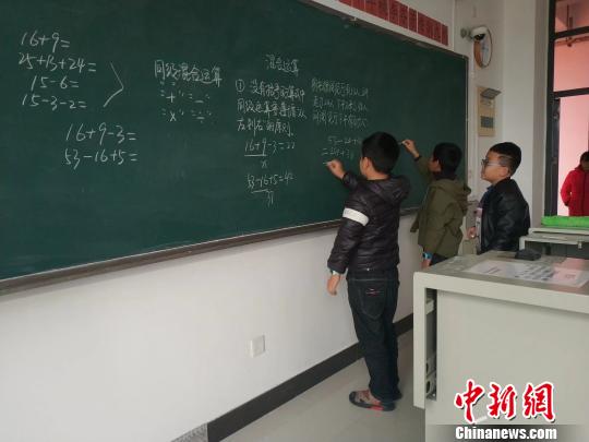 近日,中新网记者走进后山夜校。晚上7时,课程正式开始,第一节为辅导课,由教员辅导学生做作业。10位教员静立在教室四周,孩子们举起手或停笔许久,就有教员上前辅导,尤为默契。