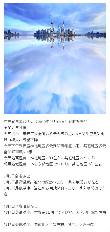 2019年05月04日 10:48:21 | 来源:江苏气象
