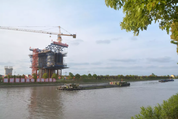 新建盐城至南通铁路正线长约156.6公里,设计时速350公里,盐城南特大桥跨通榆河228m连续梁-拱式桥是全线最大的控制性工程,也是全国在建最大跨度350公里时速连续梁—拱式桥。