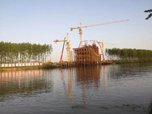 5月2日,盐通高铁工程大丰区新团桥施工现场。