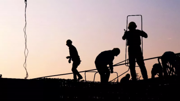 5月2日傍晚,在盐通高铁项目东台特大桥的施工现场,工人们正加班施工作业,确保按时序进度保质保量完成任务。