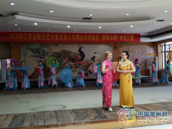 乌克兰达人Oksana(左一)来到常州锡剧院,拜师学习了常州原创交响锡歌《天涯歌女》选段。