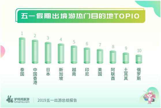 五一假期,出境游市场也更为火热。《报告》显示,今年五一出境游人次占比较去年提升近一成。其中,短线出境游占主体。泰国、中国香港、日本、新加坡、越南、印尼、美国、阿联酋、土耳其、俄罗斯,位居十大热门目的地。