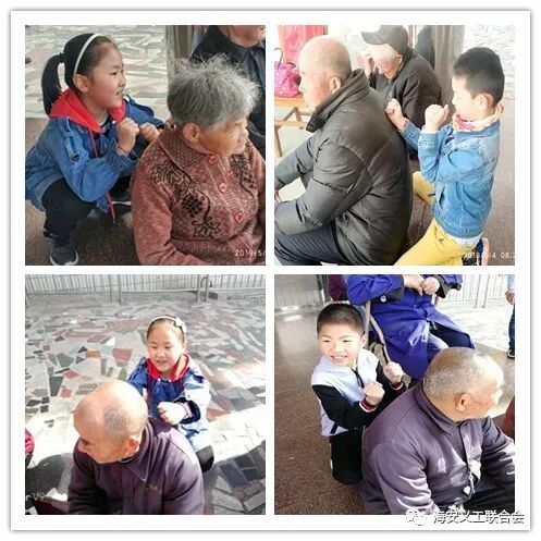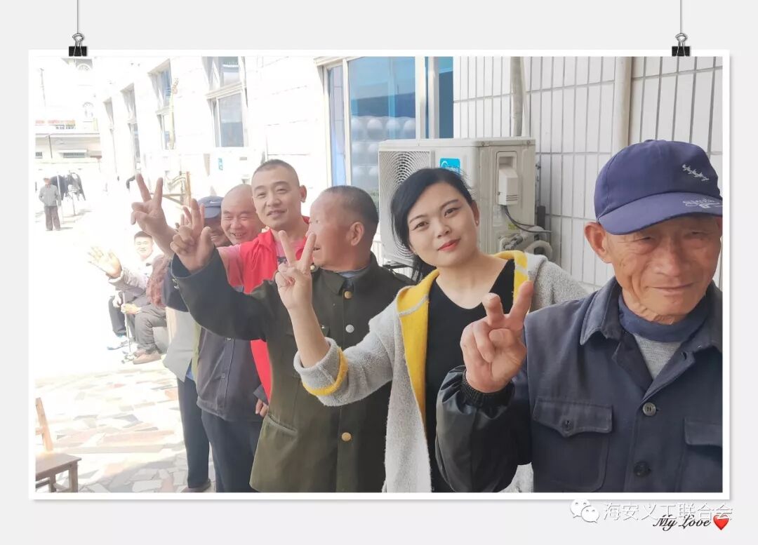 今天有一对母子的表现让我们感叹。在做自我介绍的时候,这位妈妈说,她们是徐州人,刚来这边,儿子在海师附小上一年级。他们以前也参加过义工活动,一直在寻找海安这边的义工组织,终于从一个群友那里知道了海安义工联,所以今天就来了。活动时,她不但让儿子给老人演唱了《虫儿飞》,自己也给老人带来了一段京剧,表现特别棒!当其他人在给老人表演节目的时候,她就带着儿子给老人们捶背。在回家的路上,我看见这位妈妈是骑着自行车带孩子来参加活动的,我不由得眼眶一热,有些感动,只是,路上一定要注意安全哦。