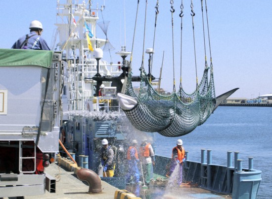 据日本每日新闻报道,日本青森县八户市的八户港是日本“调查捕鲸”的一处据点。4日是正式开始捕鲸的第一天。捕鲸船队出港后约4个半小时之后,就从水中抬出一头小须鲸。这头鲸鱼为雌性,体长5.5米,重达2吨,由小型捕鲸船“第3大胜丸”在距离八户港约20千米的海域捕获。