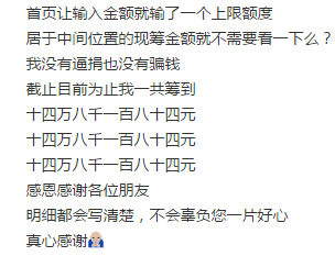 有困难的话大家愿意帮忙,但如果欺瞒网友的话,估计没人会乐意,毕竟大家的钱也不是大风刮来的。