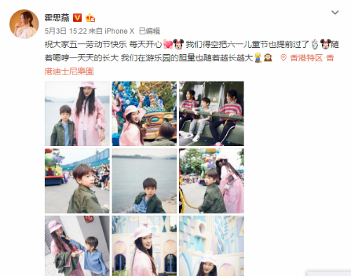 趁着五一假期,霍思燕带着嗯哼去香港迪士尼乐园玩了一圈▼▼