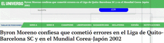 据厄瓜多尔《宇宙报》5月5日报道,莫雷诺在17年后承认错判,他在接受采访时表示,自己在2002年韩国对阵意大利的比赛中犯了一个错误,有失公允。莫雷诺说:“那场比赛黄善洪对赞布罗塔的犯规应该是红牌。”