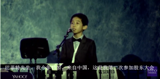 “巴菲特先生,我今年11岁,来自中国,这是我第二次参加股东大会,您曾提到过,日趋年迈,您对人性就有更深刻的理解,您能不能讲讲您学到了什么?对人性不同的理解是如何帮您进行更好的投资的?”据“雅虎新闻”直播视频显示,这位中国小男孩在股东大会上这样提问道。