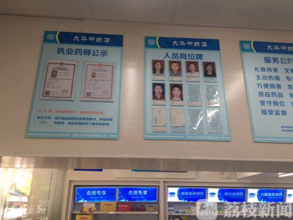 而在旁边的一家药房内,店内的工作人员和药师对此回应比较积极,表示店内的工作人员都有上岗证明,也有相关证件,墙面上的药师证与工作人员也人证相符,“现在药店都要挂证嘛,所有的证都在上面,包括药师证、人员的照片。”