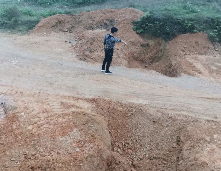杨先生:“(现场原来)有很高的围墙,但是部分村民出来阻挠,把我们的围墙给推到了。这边建了个工棚,把我们的工棚也拆掉,村民把路挖断了,不给我们施工车辆进入。”