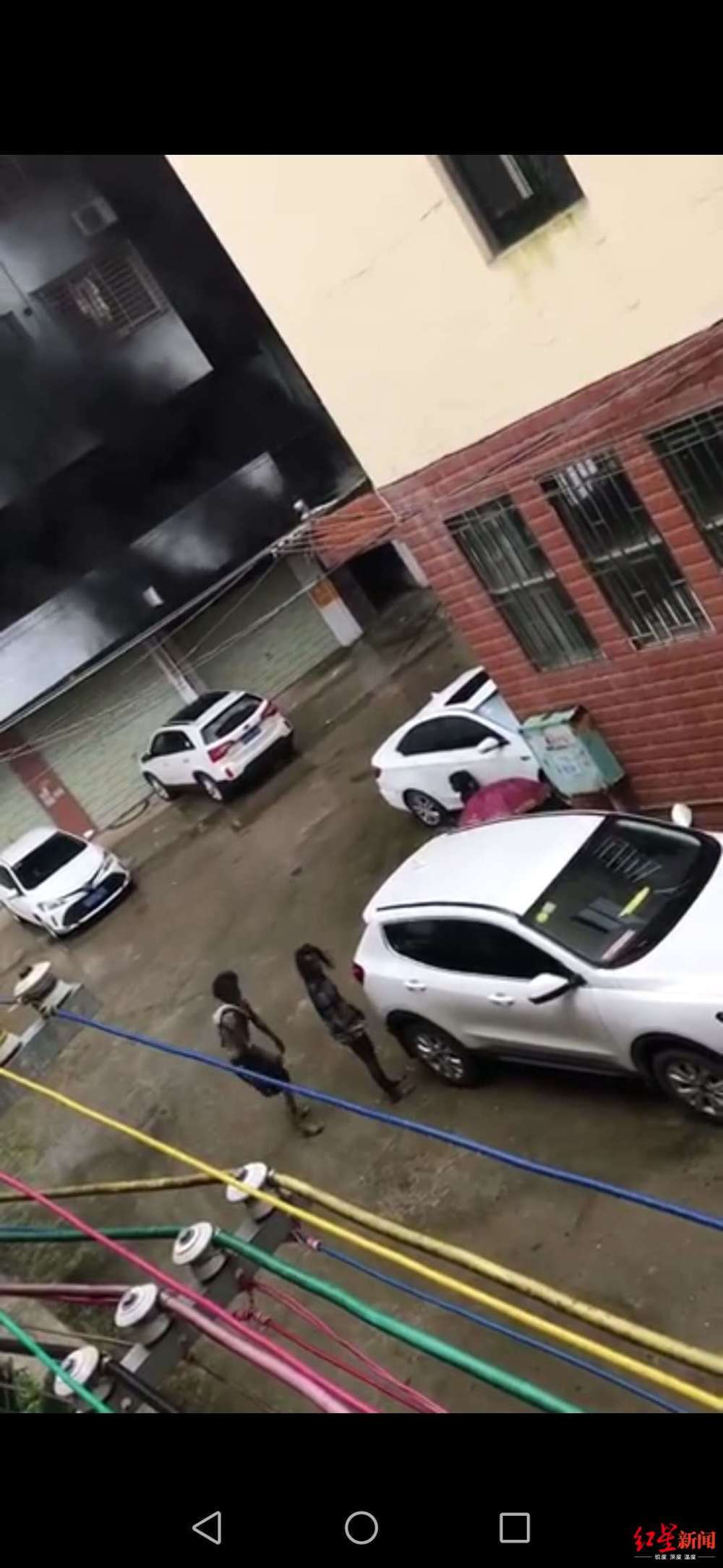 目击者向红星新闻提供的现场视频显示,有数人陆续从一楼楼梯口逃出,黑色浓烟在二楼架空层四散。一对男女站在地上,全身黢黑、衣衫褴褛。男子用近乎哀嚎的口吻喊道,“快叫救护车”。
