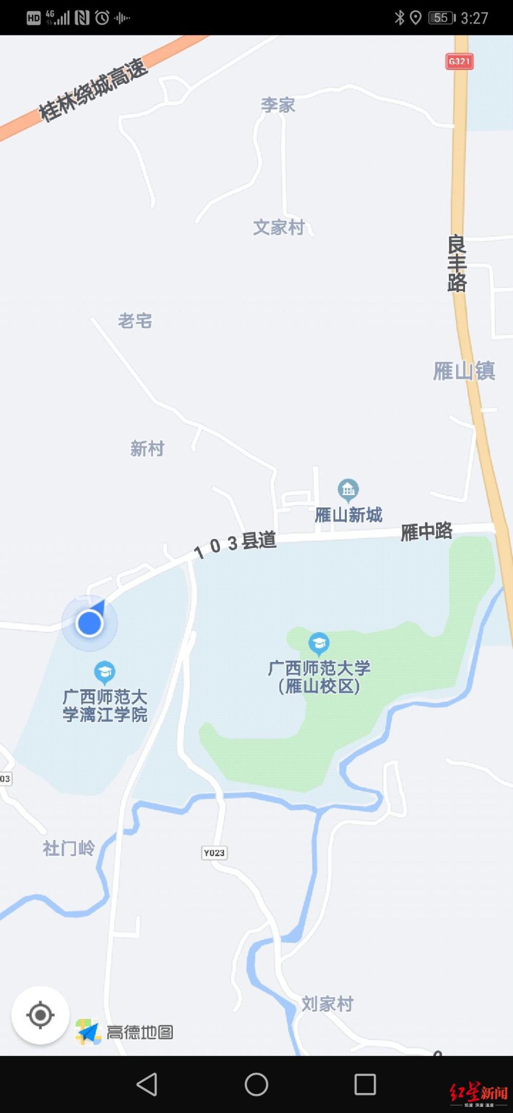 事发地所处位置,与广西师范大学漓江学院仅一街之隔