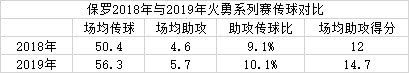正如上表展示的那样,保罗在本赛季火勇系列赛中一系列传球数据都要好于上赛季的火勇对决,保罗减少了个人强攻,进攻中将更多的能量用于组织传球。当然,就火箭的战术体系而言,保罗的单打作用更为突出,但保罗在一对一效率下降的情况下,减少投篮加强传球,至少可以让队友获益,总要比自己勉强出手强得多。
