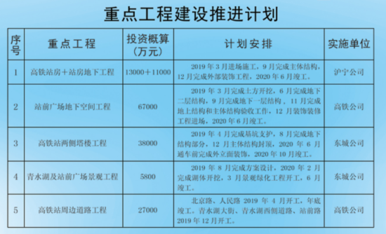 围绕沪通铁路2020年6月通车的目标,站房周边5条市政道路工程今年全面铺开,确保在2020年6月份前全面完成。高铁枢纽站房、地下空间工程、站前广场等项目力争在2020年10月份全面竣工。