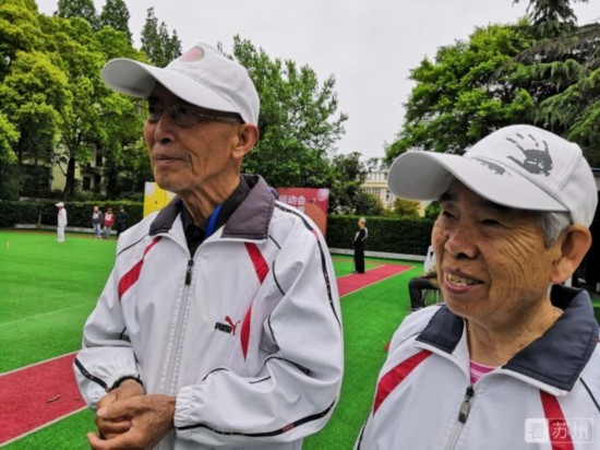 看这对夫妻档的“默契”。张爷爷和李阿姨都已年过八旬,那精气神却丝毫不输年轻人,俩人一起练门球已经十几年了。“我们平时经常在家里探讨球技,培养默契,这样比赛的时候就更有优势。”李阿姨说。