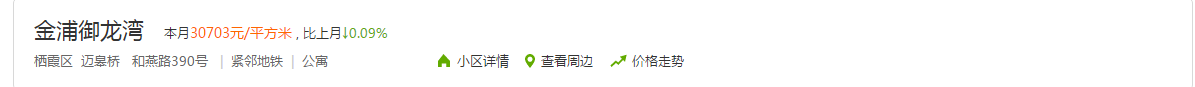 根据安居客二手房交易平台显示,目前金浦御龙湾的二手房平均价格达到30703元/㎡,倒挂近4000元/㎡。