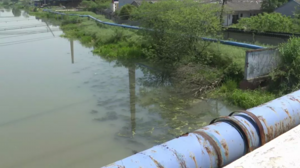 在俞垛镇东方河河面,有一些水草及漂浮物,需要及时清理。