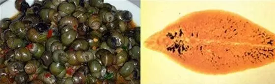 贵州遵义市桐梓县一名青年,天天晚上都要吃一盘田螺,渐渐地他的眼白、皮肤都呈现出淡绿色,并且腹痛。医生最终从他的胆总管里取出4条长约10mm、宽约8mm的肝片形吸虫。