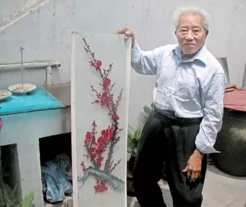 “我们现在都劝他不要再画了,”李太生的女婿丁利生告诉记者,由于年轻时长时间蹲着画玻璃画,老人的腿脚落下了毛病,双腿关节变形弯曲,平时行动还要依靠拐杖。