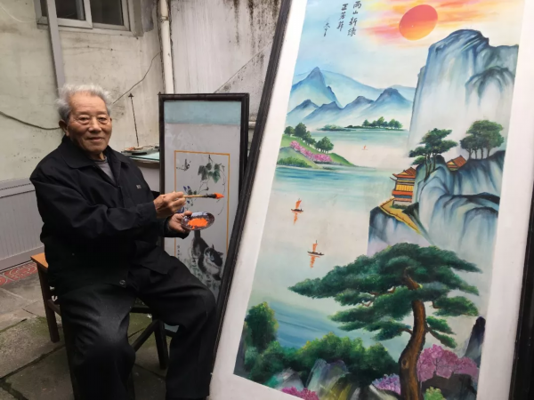 上世纪七八十年代,家具玻璃画曾经风行一时,在居民家中的中堂或高低柜、衣柜、木床等家具上,玻璃画的影子随处可见。今年92岁,家住凤凰街道塘湾社区的老人李太生就曾经是远近闻名的玻璃画高手,每年出自他手的玻璃画数百件,或许,你家里的老物件上就曾有他的作品。