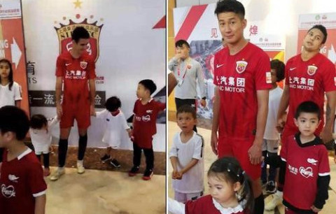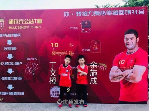 5月4日,中超联赛第8轮上海上港与广州富力在上海八万人体育场开赛,来自启东市实验幼儿园大5班的余施成与南苑小学一年级10班的丁文樟,以大手牵小手的方式,分别签手球星奥斯卡和于海走进中超赛场,与两队球星一起看升国旗,唱国歌。