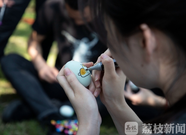 斗蛋之前,同学们拿出画笔,将自己的“斗士”精心“打扮”了一番,女同学们在蛋上画上愤怒的小鸟,机器猫等童年的动画角色,生动可爱。男同学们则画上纸飞机、勇士等图案,寄托了对童年美好的回忆。同学们将自己必胜的信念画在蛋上,蛋头对蛋头,蛋尾对蛋尾,相撞后破壳就被吃掉,最后胜出的就是“蛋王”。