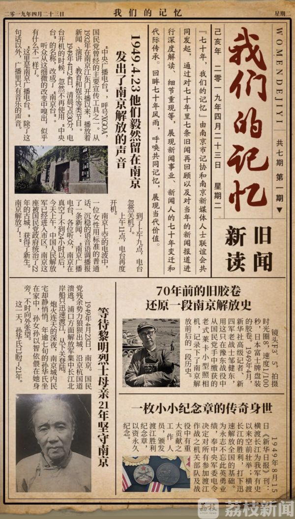 今天(5月7号)上午,“70年,我们的记忆·旧闻新读”活动在南京市新闻发布厅正式发布。这项活动已列入南京市庆祝中华人民共和国成立70周年主题宣传教育活动。