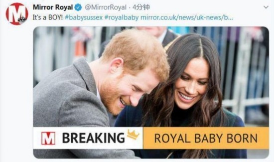 英国哈里王子与梅根王妃的第一个孩子已经诞生,是个男孩。