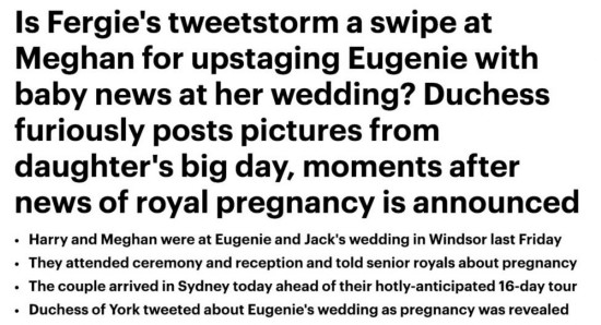 等到怀孕消息坐实,一批人又开始指责她“喧宾夺主抢关注”。因为当时尤金妮公主结婚没多久,梅根就被骂怀孕抢了公主的热度...