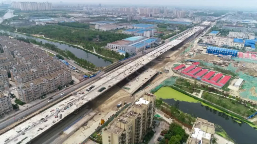 ▲东环高架北延工程施工现场航拍