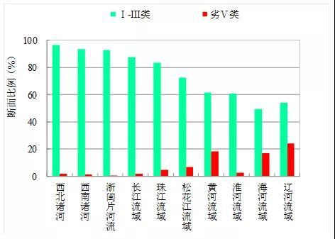 2019年3月,长江、黄河、珠江、松花江、淮河、海河、辽河等七大流域及西北诸河、西南诸河和浙闽片河流Ⅰ-Ⅲ类水质断面比例为75.4%,同比上升3.4个百分点;劣Ⅴ类为5.8%,同比下降3.2个百分点。主要污染指标为氨氮、化学需氧量和五日生化需氧量。其中,西南诸河和西北诸河水质为优,长江流域、浙闽片河流和珠江流域水质良好,淮河、松花江、黄河、辽河和海河流域为轻度污染。