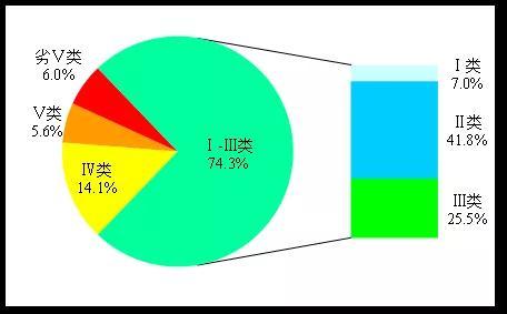 2019年3月,1940个国家地表水评价断面中(实测1788个),水质优良(Ⅰ-Ⅲ类)断面比例为74.3%,同比上升5.8个百分点;劣Ⅴ类断面比例为5.5%,同比下降3.1个百分点。主要污染指标为总磷、化学需氧量和氨氮。