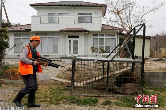 资料图:为迎接回到家乡的居民,福岛县的富冈町、浪江町展开猎杀野猪的行动。