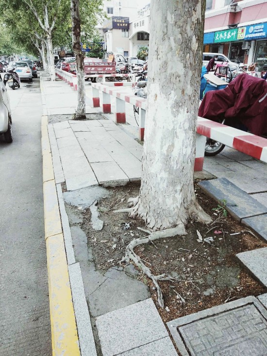 市民程先生告诉记者,人行道上原本就不宽敞,栽树时要有前瞻意识,将树坑挖得深一点,给树根留出尽可能大的空间,或者栽种根系不发达的绿化树种。