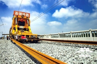 连淮扬镇铁路扬州段铺轨 资料图片