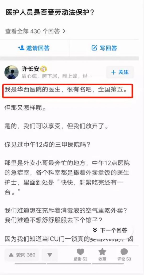 但是在知乎中,“许长安”却自称“华西医院医生”。
