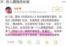 称网友找出“咪蒙 ” 微博侮辱爱国言论让他“不寒而栗”。