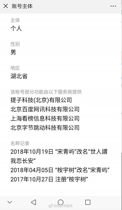通过网络信息关联和主要作者信息,网友们发现“世人謂我恋长安”和 “鹿林阁的青屿堂”实为大小号。公众号名称从桉宇树到宋青屿再到许长安,背后却可以看出是同一波人。