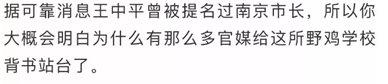 “许长安”在文章中为了证明学校校长“这个王中平有多狠呢”,称“据可靠消息王中平曾被提名南京市长”。南京市是副省级城市,市长是副部级,按照组织程序,提名南京市长候选人需经江苏省委研究,并报中共中央同意。 所谓的校长王中平只是一名商人,没有任何公职。