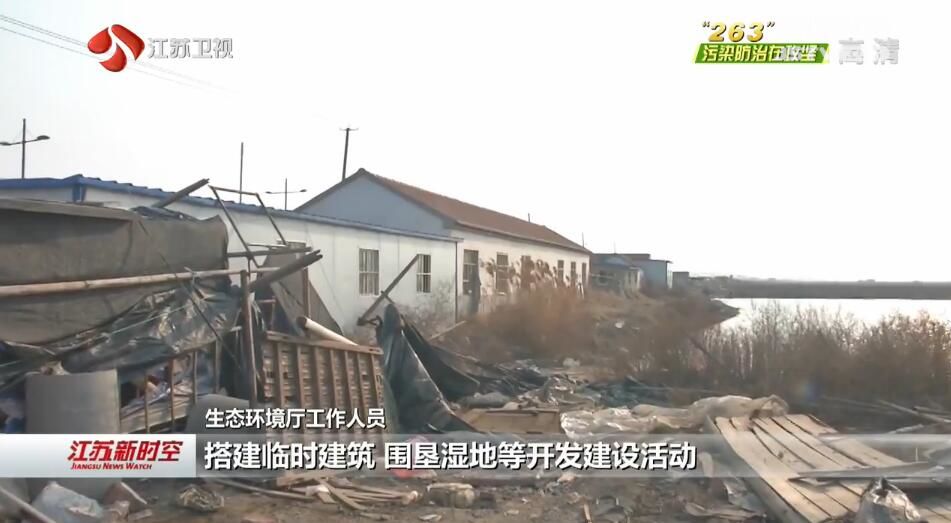 暗访组首先来到连云港连云区临洪河口湿地,发现湿地内存在3000多亩水产养殖区域,养殖工人就住在湿地边临时搭建的工棚里,生活垃圾随处倾倒,对湿地的生态环境造成严重破坏。