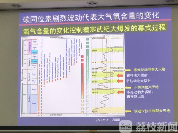 这一成果,首次采用定量模型,论证了5.4亿年前动物的寒武纪大爆发的过程受控于大气和海洋的氧气含量变化,而发生在距今5.14 亿年左右的寒武纪动物群大灭绝事件是海水缺氧造成的。朱茂炎介绍,寒武纪大爆发是多阶段的过程,氧气含量的多和少,影响了大爆发的规模和过程。氧气增加了,生物多样性就增加了,大爆发的速度就加快了。