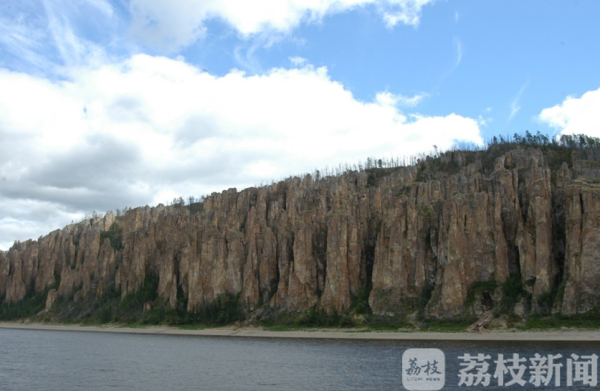 西伯利亚勒拿河边陡峭的寒武纪早期碳酸盐岩地层剖面