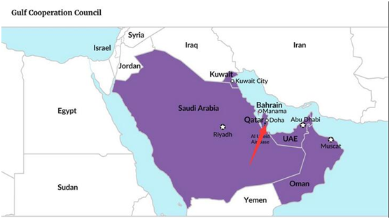 乌代德空军基地与伊朗位置示意/资料图