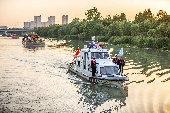 5月3日晚,扬州古运河水面流光溢彩。在交通海事引导船的率领下,扬州号、通州号、济宁号、杭州号……16艘形态各异的花船从京杭之心出发,顺着流淌千年的大运河缓缓前行,向世人展示着运河沿线城市的独特魅力。