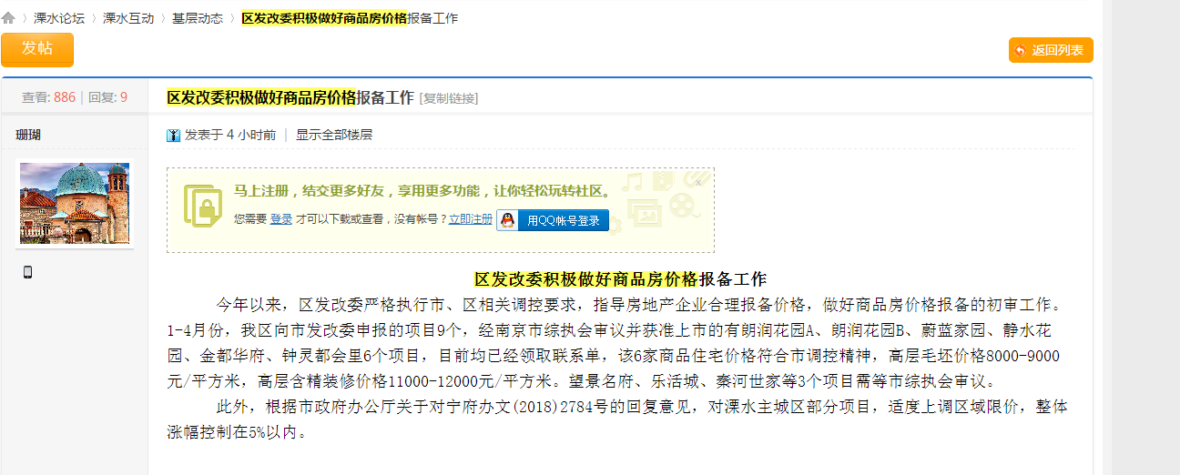 可当本站小编再去查询这条信息的时候,发现该文章已被删除!所以溧水主城是否真的存在适度上调区域限价,目前并未得到官方认定。